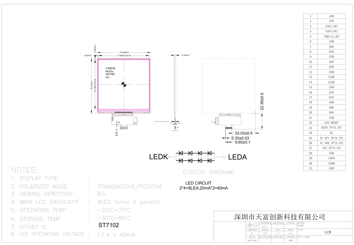 -30°C ~ +80°C という非常に広い動作温度範囲により、極端な環境向けに設計されています。高度なセル内テクノロジーと MIPI インターフェイスにより、スムーズで応答性が高く、信頼性の高い統合が保証されます。耐久性、鮮やかさ、多用途性 - 3.95 インチ アンチグレア 1024X600 IPS インセル タッチ スクリーン モジュールは、要求の厳しいアプリケーションに最適です。