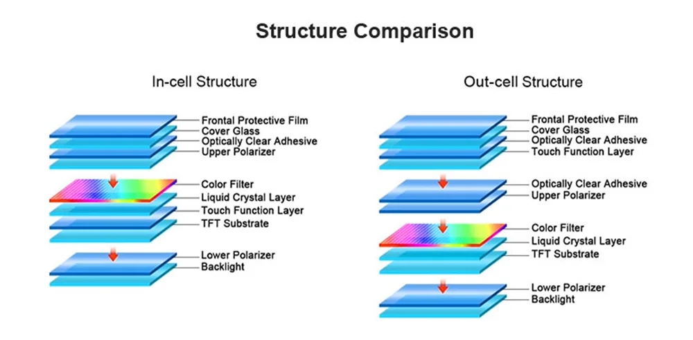 セル内タッチ スクリーンと従来のセル外タッチ スクリーン