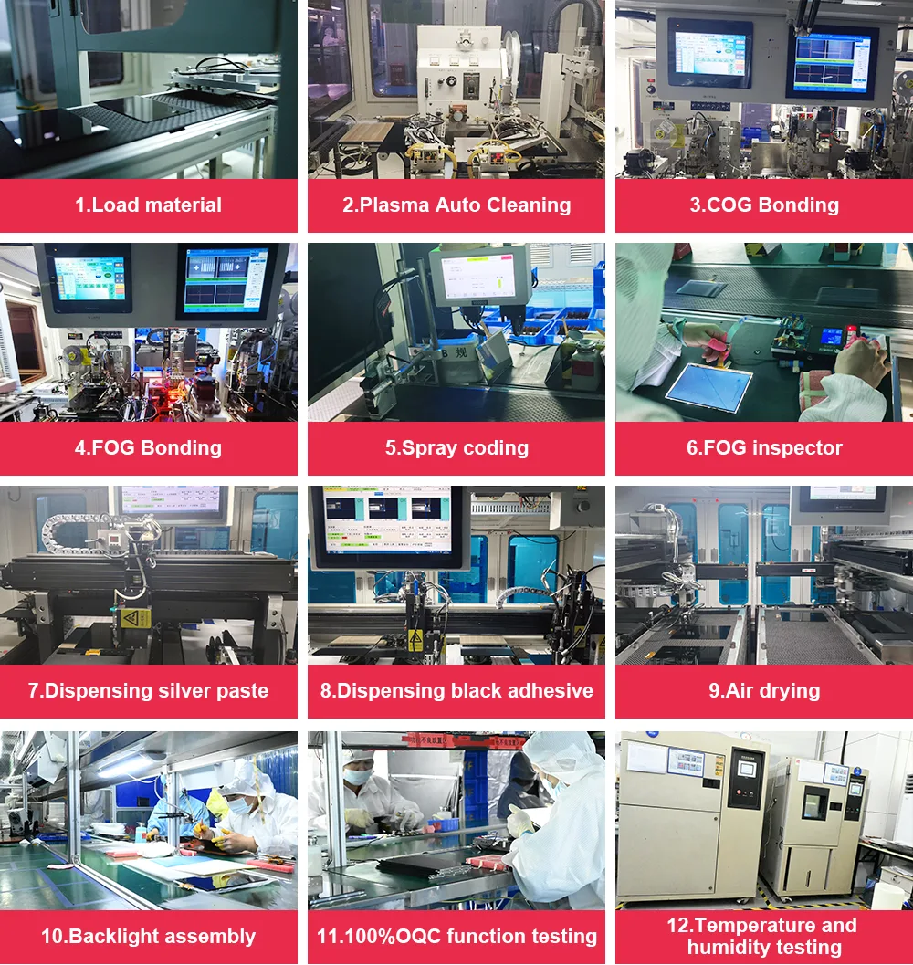 ハードウェアのカスタマイズ:サイズ(非標準サイズがサポートされています);インターフェイス(LVDS/RGB/MIPI/パラレルポートなど);バックライト(エッジライト/直接照明、調整可能な色温度);ガラス(アンチグレア/AR反反射/抗フィンガープリント);ベゼル(狭いベゼル/カスタム型切断);コネクタ位置オフセット(±0.3mm精度);輝度調整:250〜1500 cd/m²調整可能。厚さの減少(フルラミネーション≤1.5mm)など。