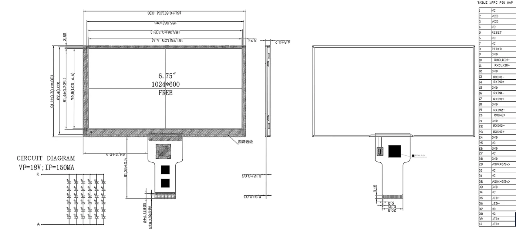 1000 cd/m²の輝度により、明るい環境でも優れたパフォーマンスを保証し、-30°C ~ +85°Cの動作/保管温度範囲により、過酷な環境にも耐えることができます。寸法 161 × 91.1 × 4.8 mm (アクティブ表示領域 151.76 × 79.8 mm) の 6.75 インチ LED バックライト IPS TFT 小型タッチ スクリーン モジュールは、簡単に統合できる LVDS インターフェイスと 36 LED バックライトを備えており、産業用ディスプレイ、屋外機器、または要求の厳しい視覚環境に最適です。